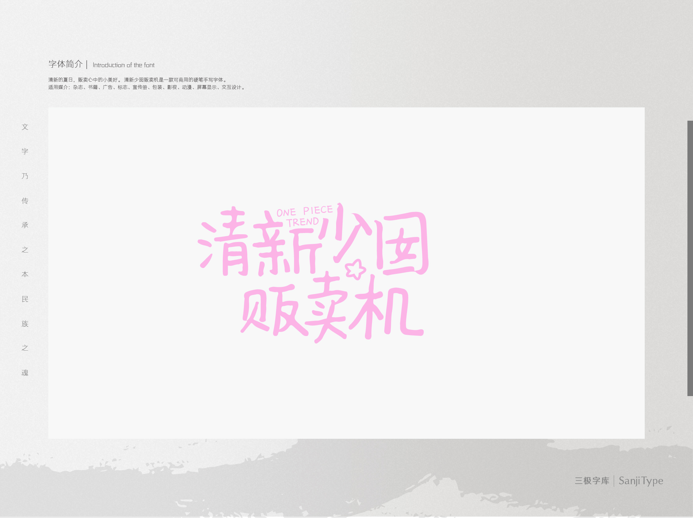 清新少囡贩卖机,这款字笔画分明,带有几分可爱稚感。带有手写趣味,亲和力十足。适用于温暖、治愈、公益等风格的设计场景。