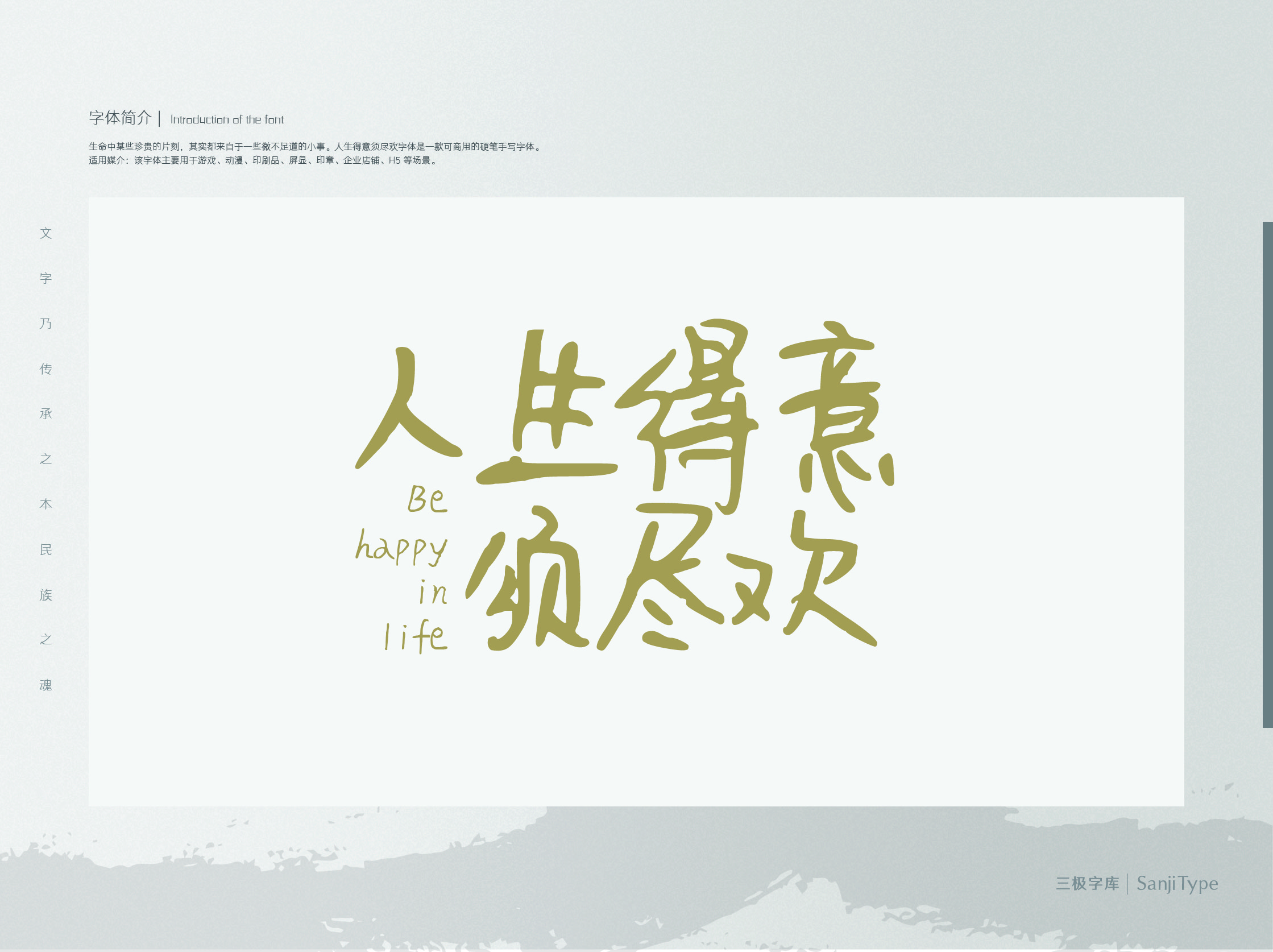 这款硬笔字体笔画紧密,线条较粗,少许的粗糙增强手写感的随意自在。该字体适用于个性文艺类的书刊、品牌广告和产品包装设计,以及社交网络的个性化用字。