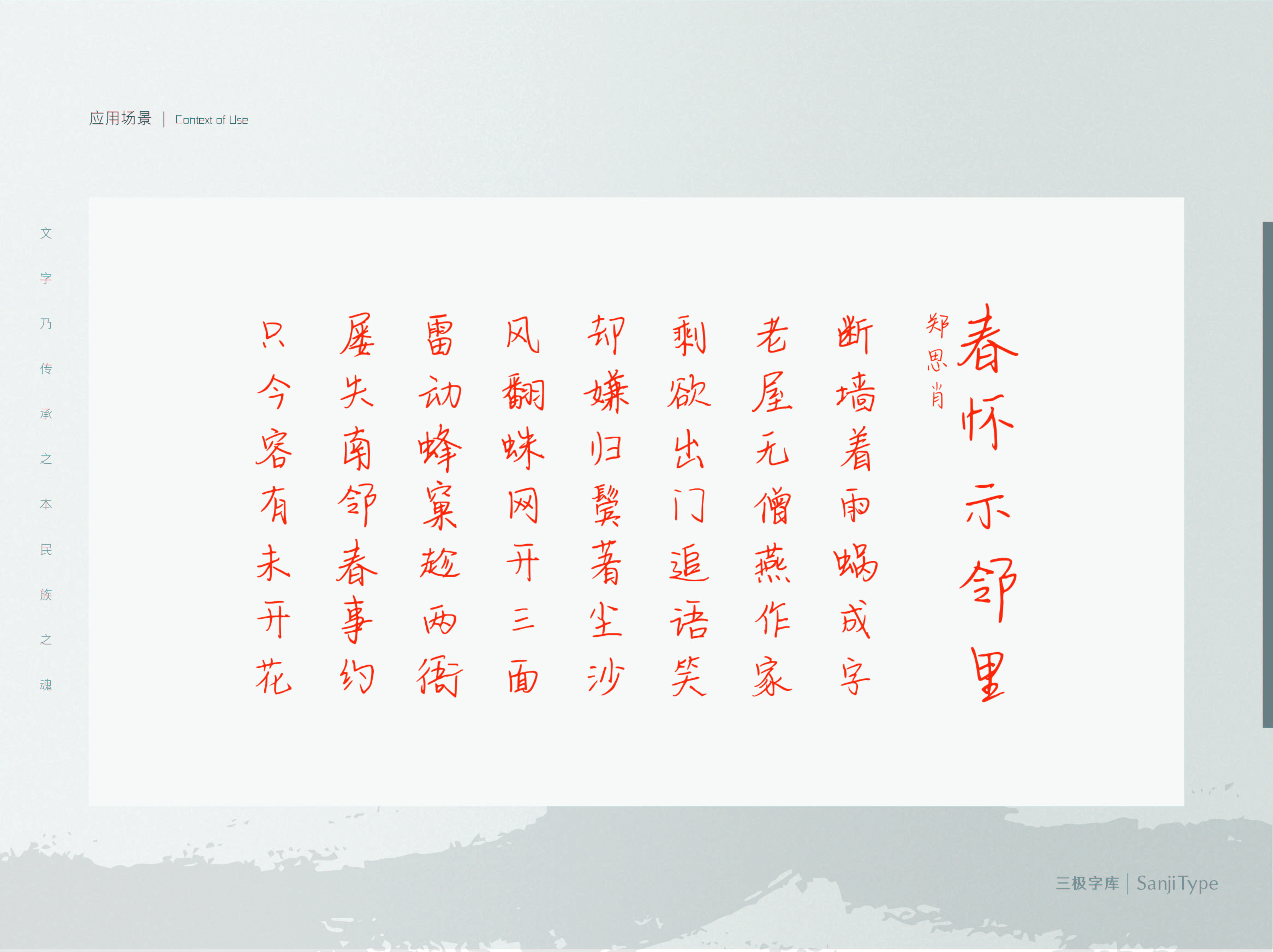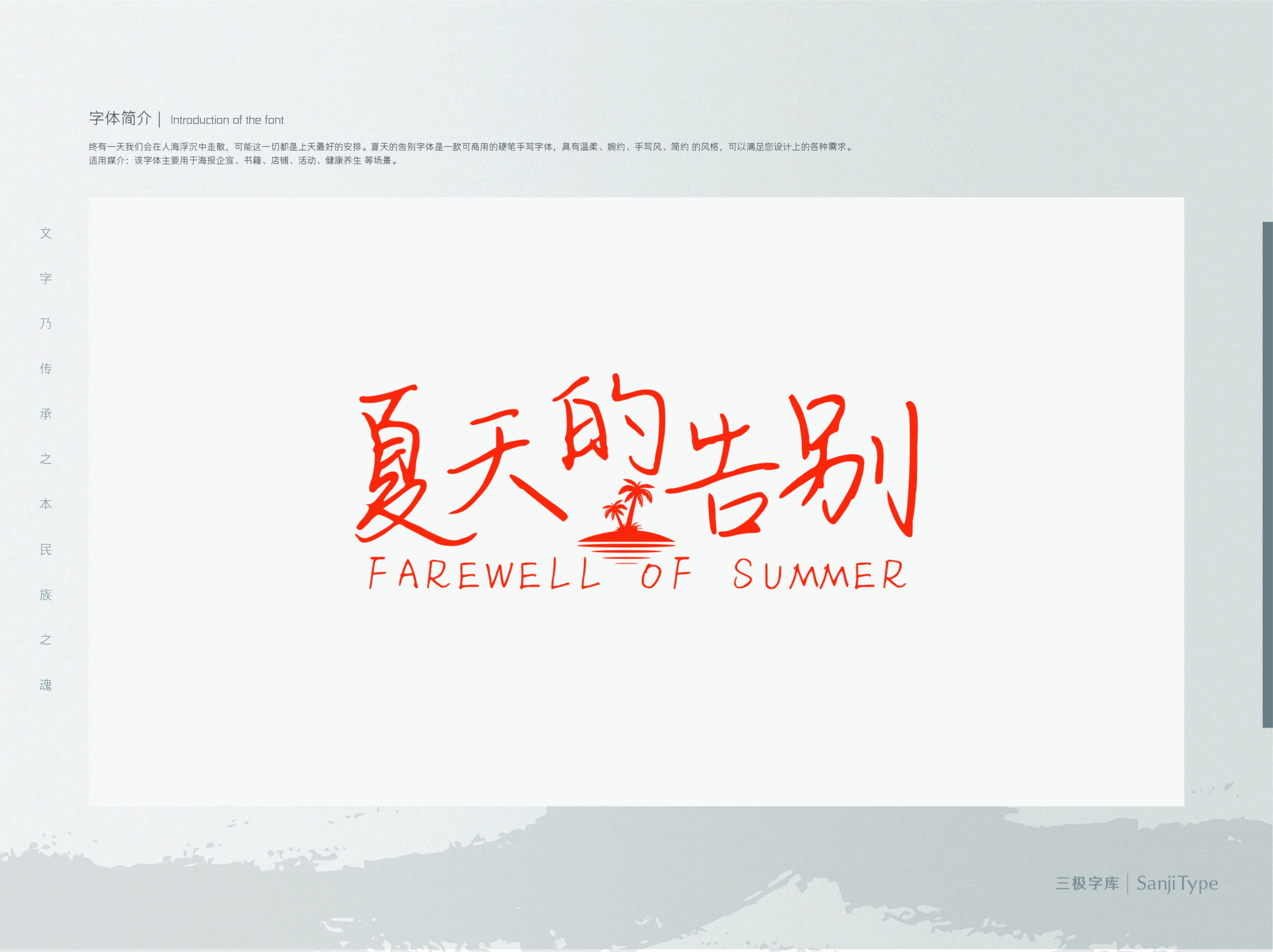 本款手写字展现出了浓厚的书法气息,既具有隶书一波三折、蚕头燕尾的特点,又带有现代硬笔书写的随和感,符合当今的大众审美。适用于现代诗歌、短文的排版以及文化、商业类品牌的广告语设计。