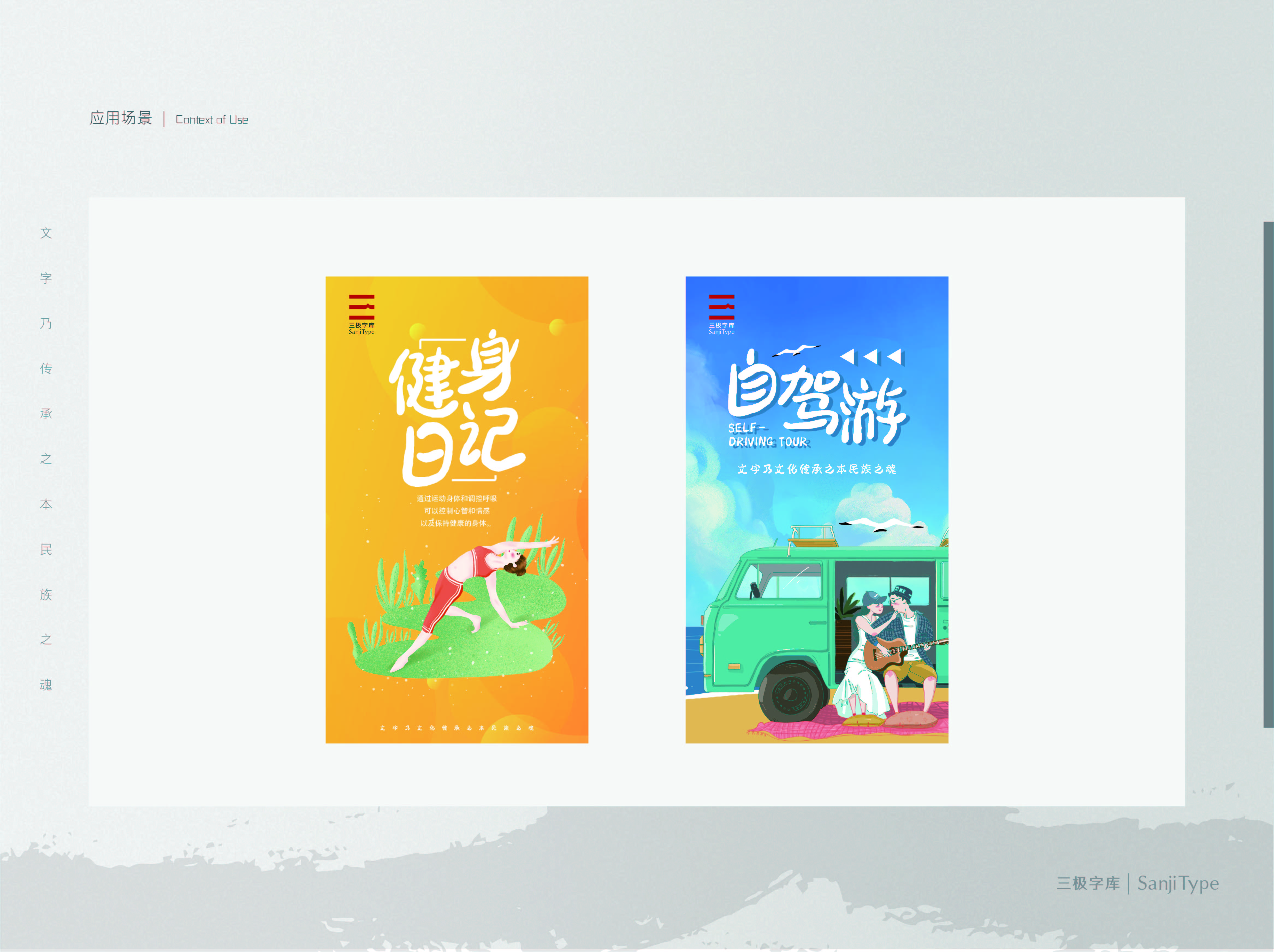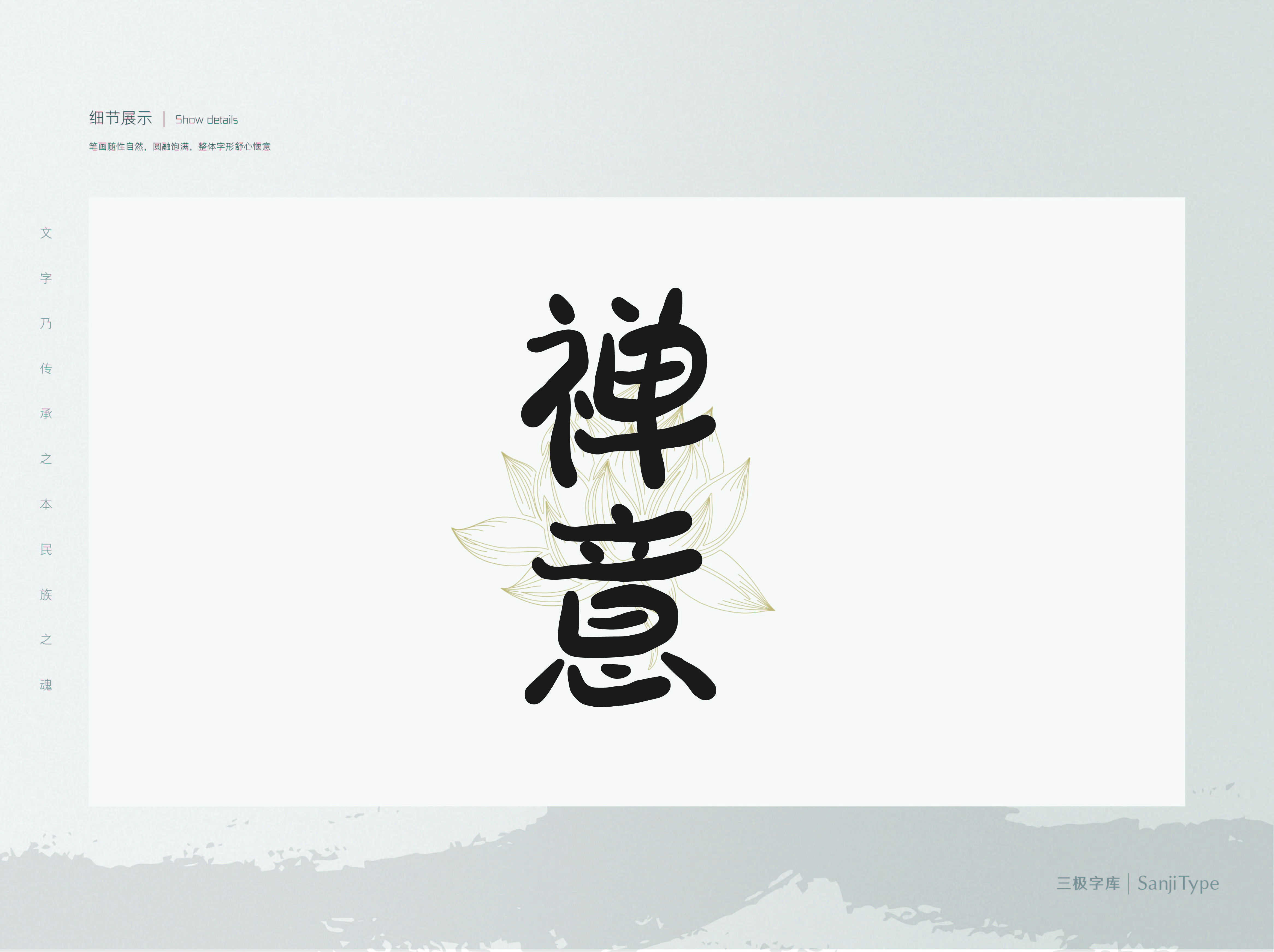 三极禅意体这款字体,字形笔画圆润可爱,笔画结构稍带扭曲,如同少女翩翩起舞,形疏气紧留白,禅意优雅。该字体主要用于文创、动漫、电商、媒体等场景。