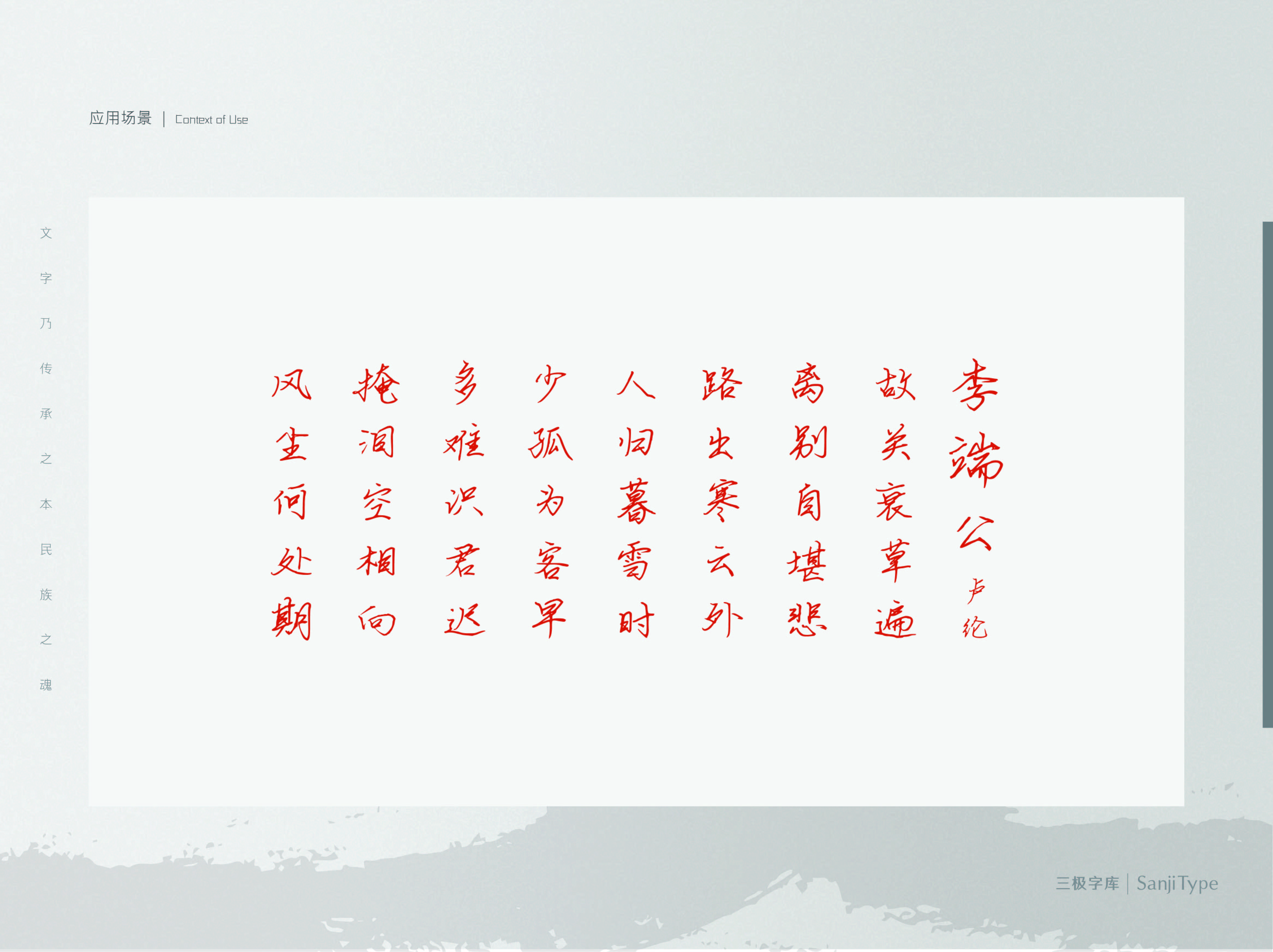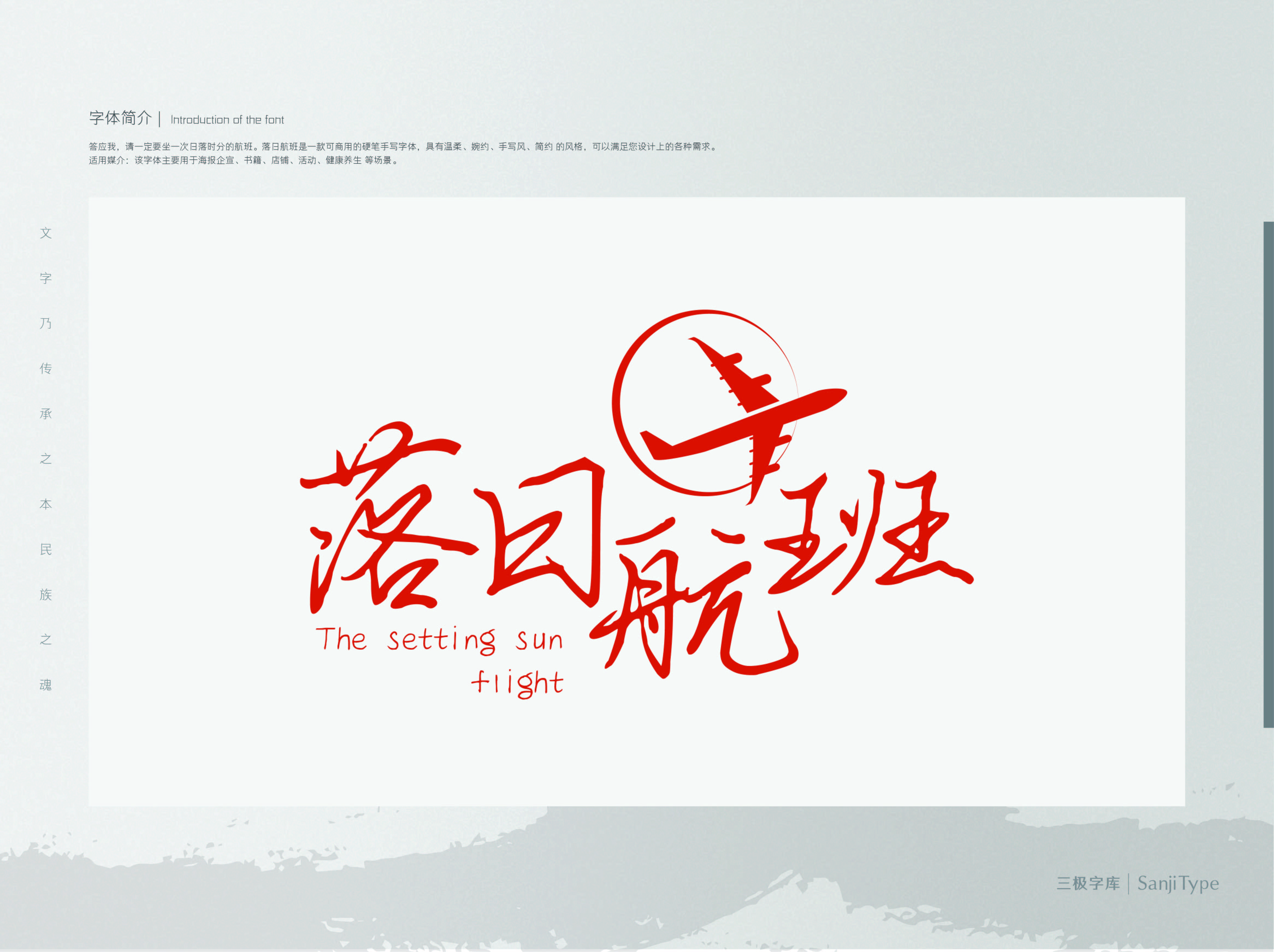 仿佛一幅落日时分的水彩画,落日航班是一款浪漫唯美的手写字体。字形较宽,连笔飘逸,适用于需要表现爱情、梦幻、浪漫的设计主题中。
