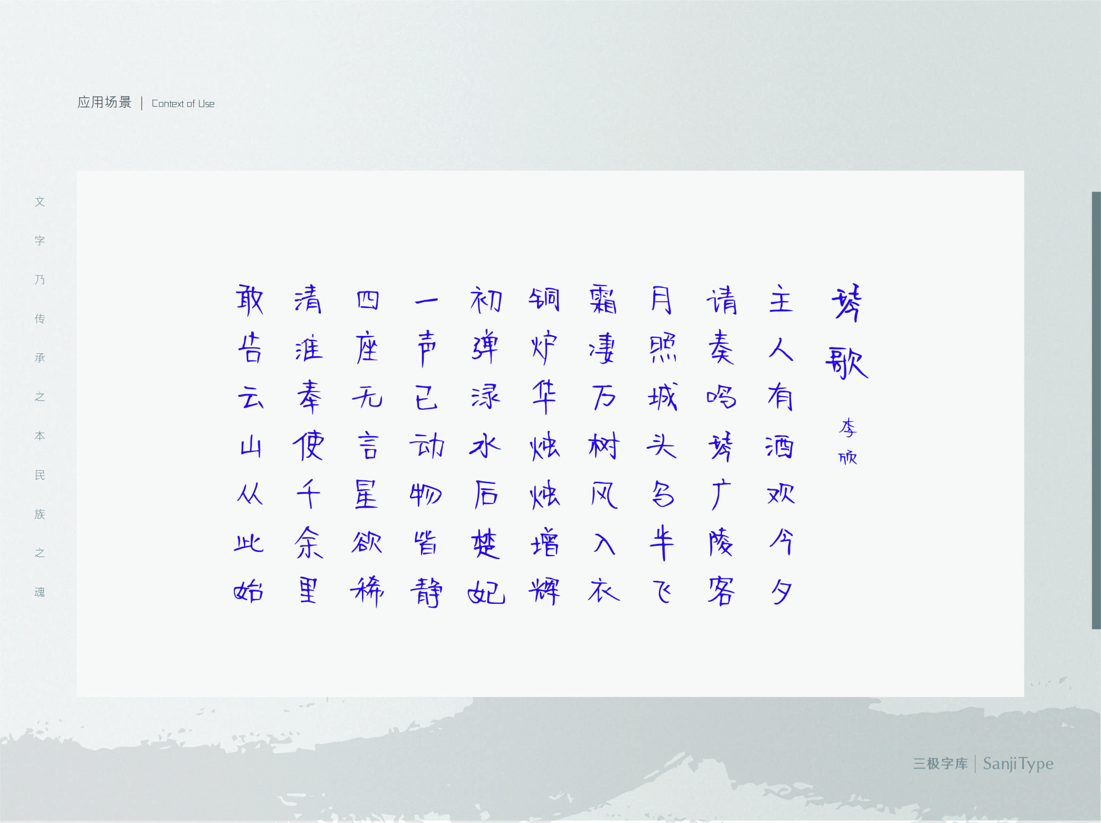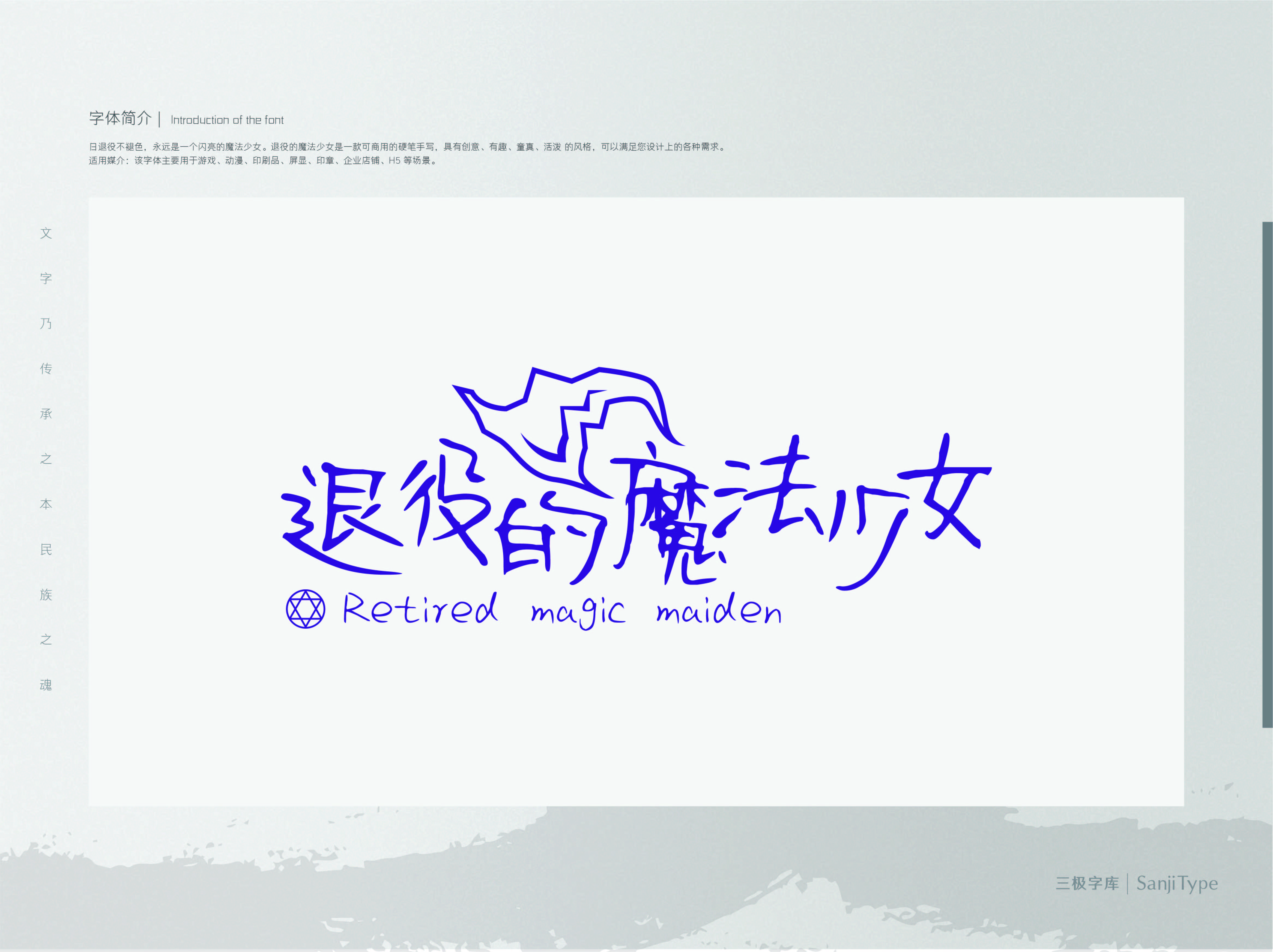 仿佛个性率真、跳脱俏皮的小魔女,该款字体字形并不规整,笔画灵动不失识别度,童真趣味感跃然纸上。适用于青春游戏、影视歌剧、社交vlog等场景中。