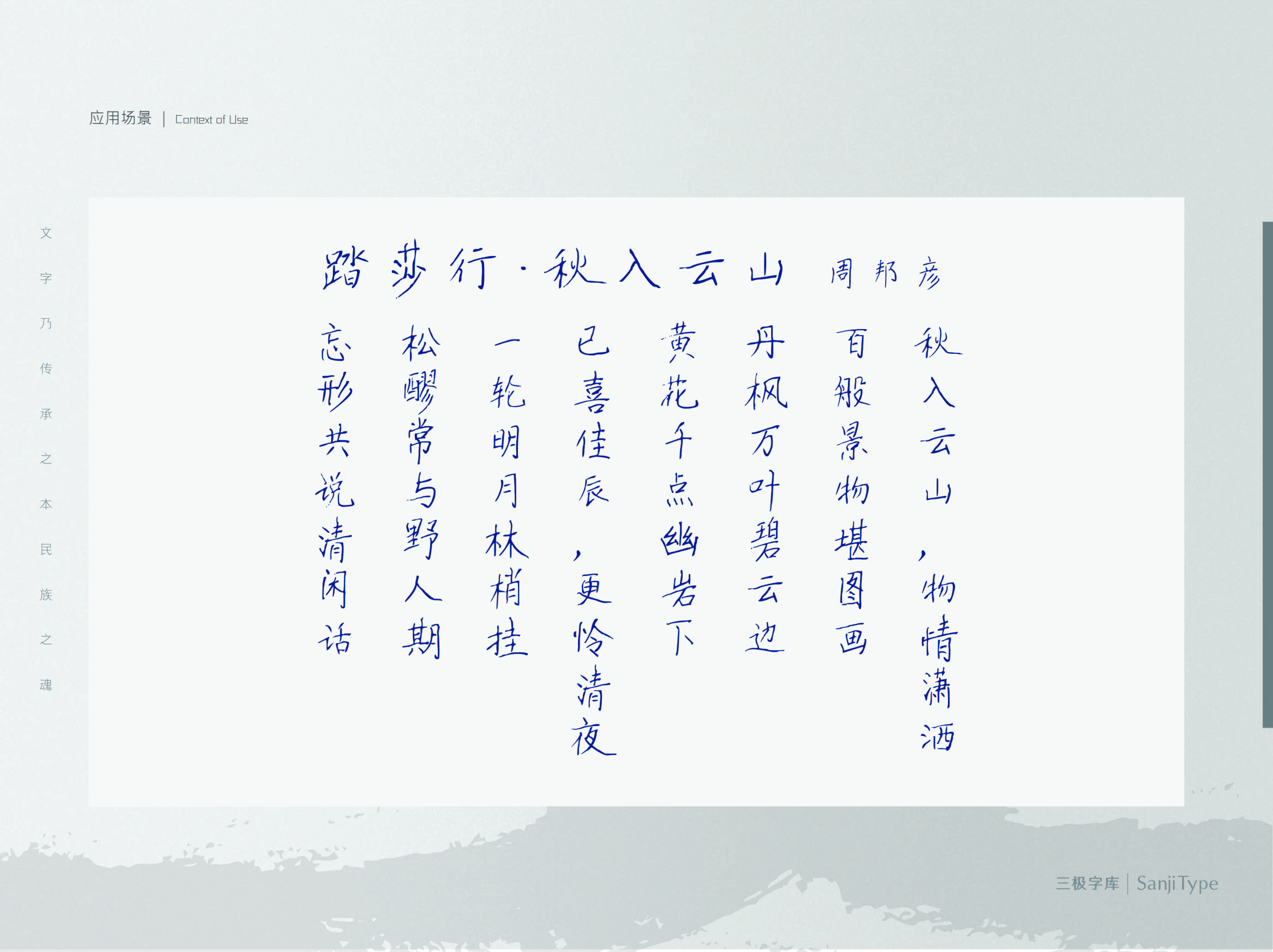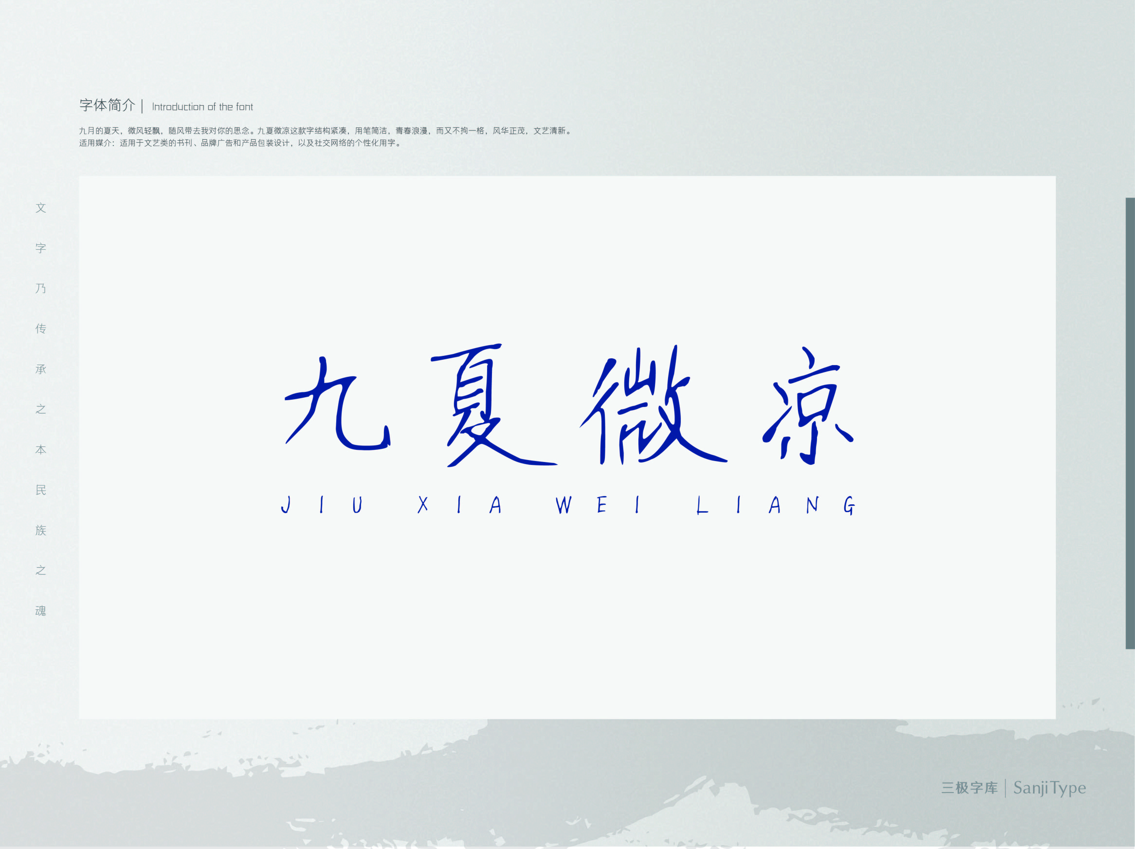 九夏微凉是一款中宫收紧,笔画随性,带有文艺青春气息的字体。适用于青春随性、文艺清新风格的广告标题、影视海报,个人社交平台封面等场景