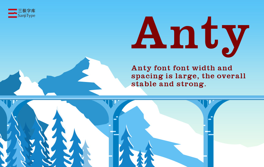 Anty是一款英文衬线体,圆润的字形中饱含优雅复古。除了常规的矩形衬线,还加入弧线为主的不规则形状作为次衬线装饰,体现稳重和精致。数字设计同样精巧,圆点与弧线增强了数字的形状美,适用于编排精致的时间文字组。该字体可自如地运用于 logo,商场海报、游戏标题、淘宝电商、包装、品牌宣传中。