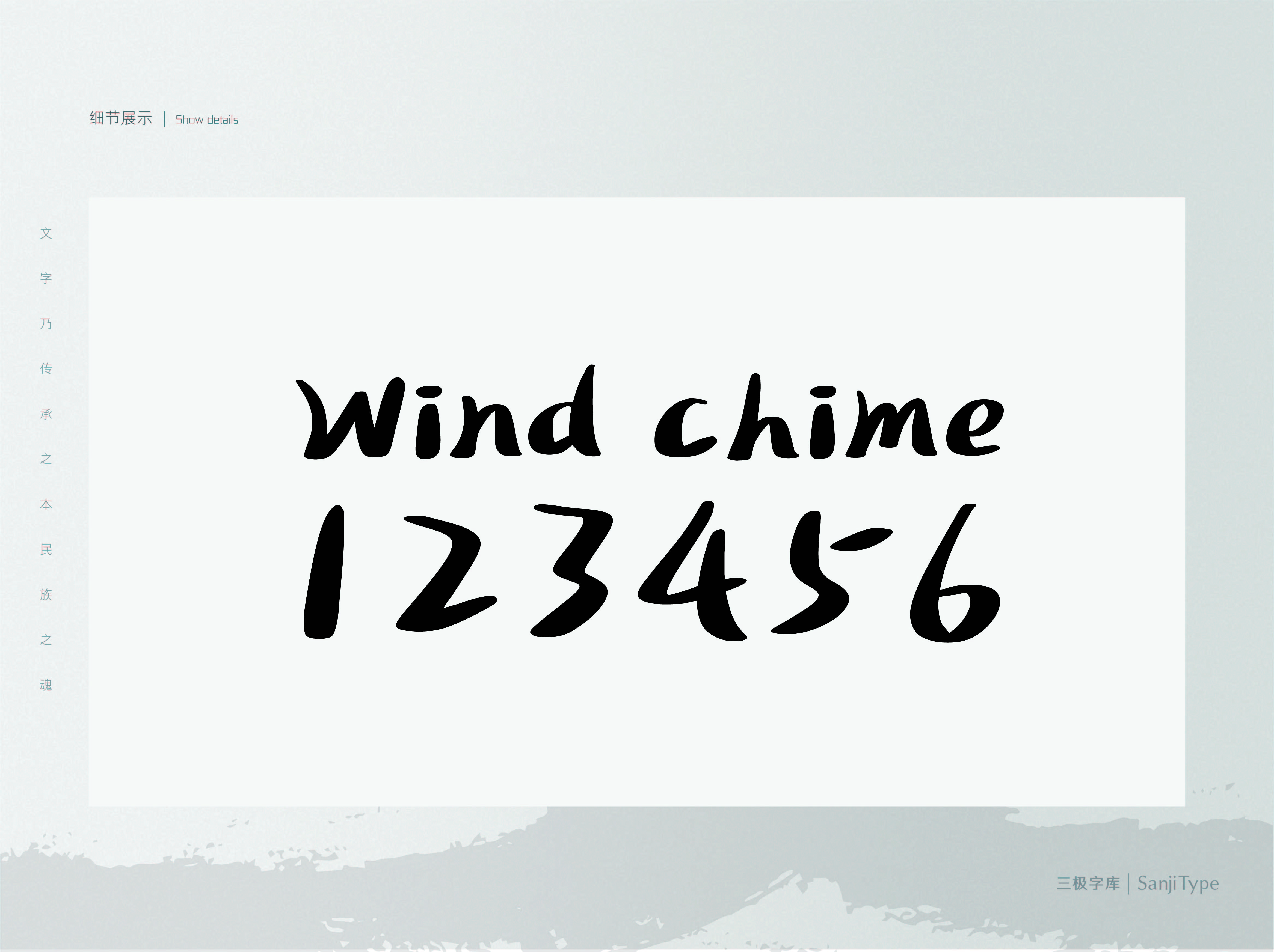 三极风铃体是一款家族字体,该字体笔画结构开阔疏朗 ,像风一样舒展 轻松随性 适用于标题 产品包装、游戏动漫、书籍、文创杂志等。