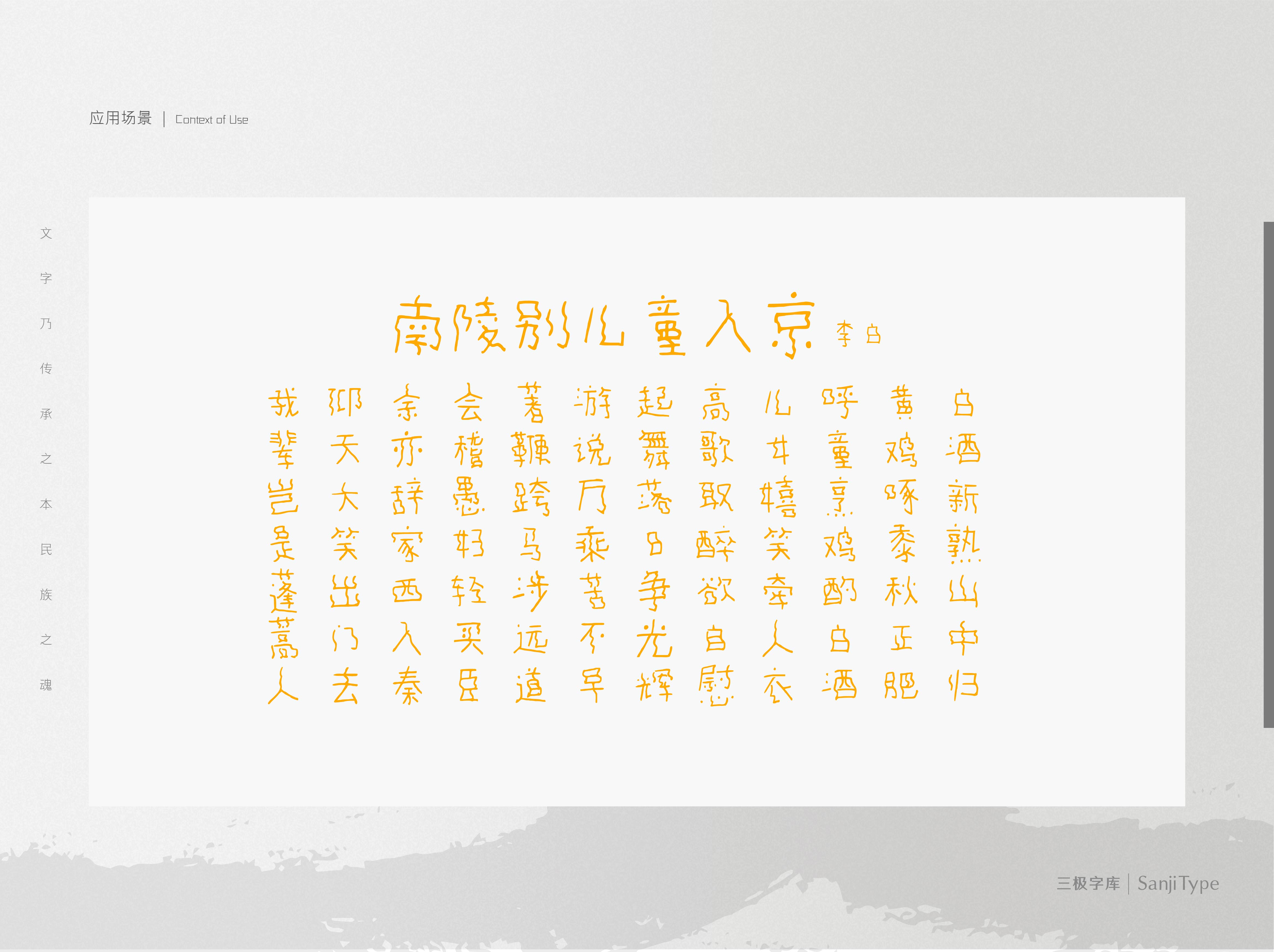 被风吹过的麦田是一款创意十足的字体,波浪形笔画,像被风吹过的麦田,呈现一种自然灵动之感。适用于儿童绘本、节气海报标题字、野外自然主题海报等设计用字。