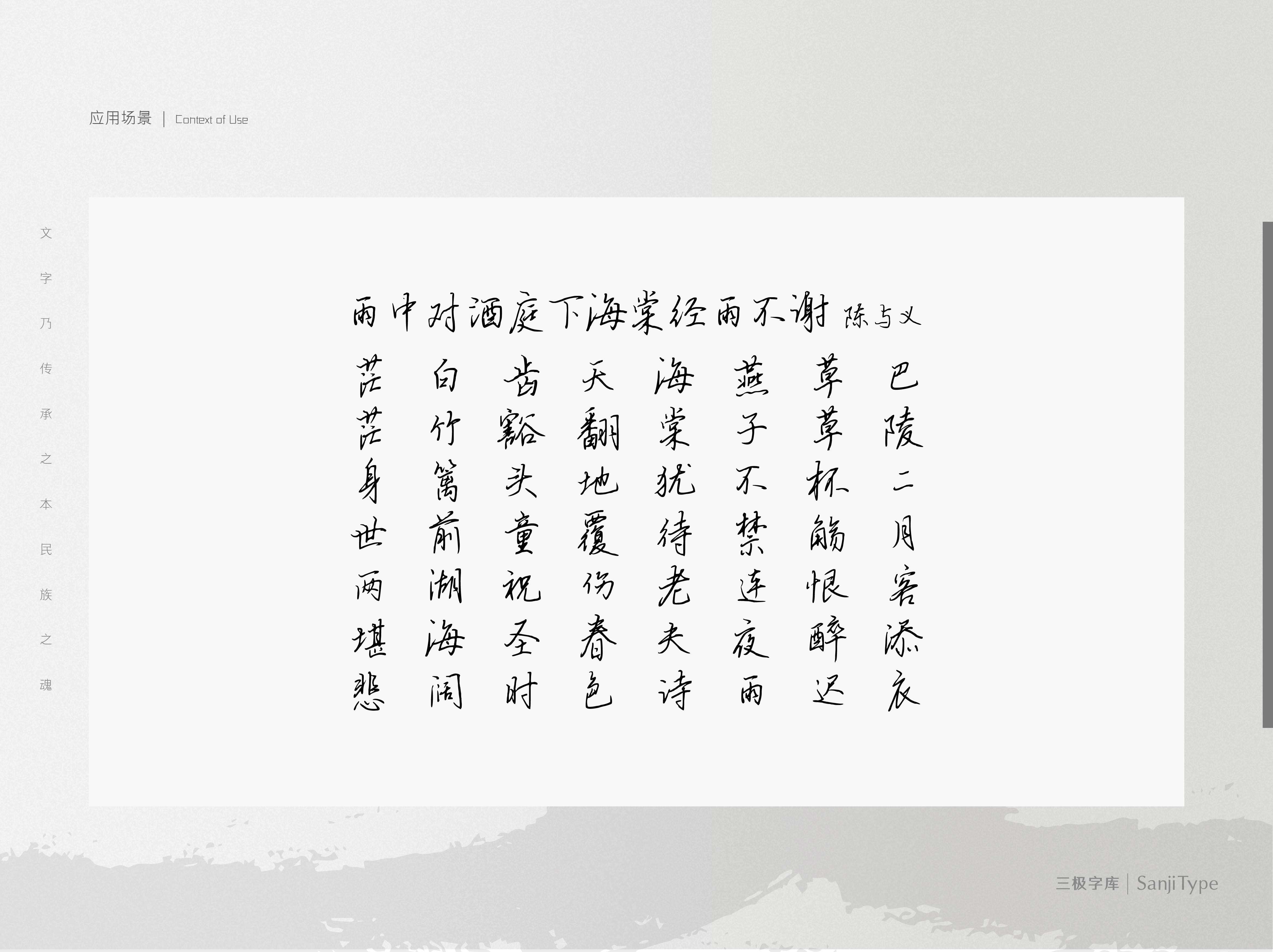 三极钟云毓秀行楷是一款具有古典国风的手写字。由中细签字笔书写而成,但运笔起承转合富有毛笔意韵。适用于现代诗歌、短文的排版,以及文化、商业类品牌的广告语设计。