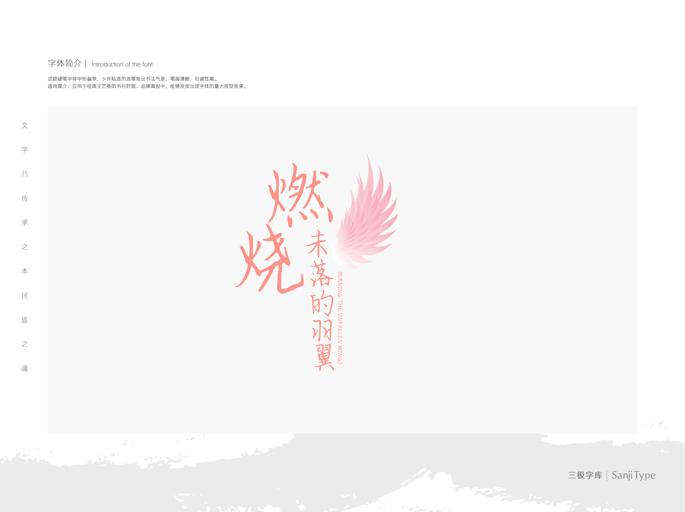 燃烧未落的羽翼这款硬笔字体字形偏窄,少许粘连的连笔带出书法气息,笔画清晰,可读性高。应用于经典文艺类的书刊封面、品牌海报中,能够发挥出该字体的最大视觉效果。