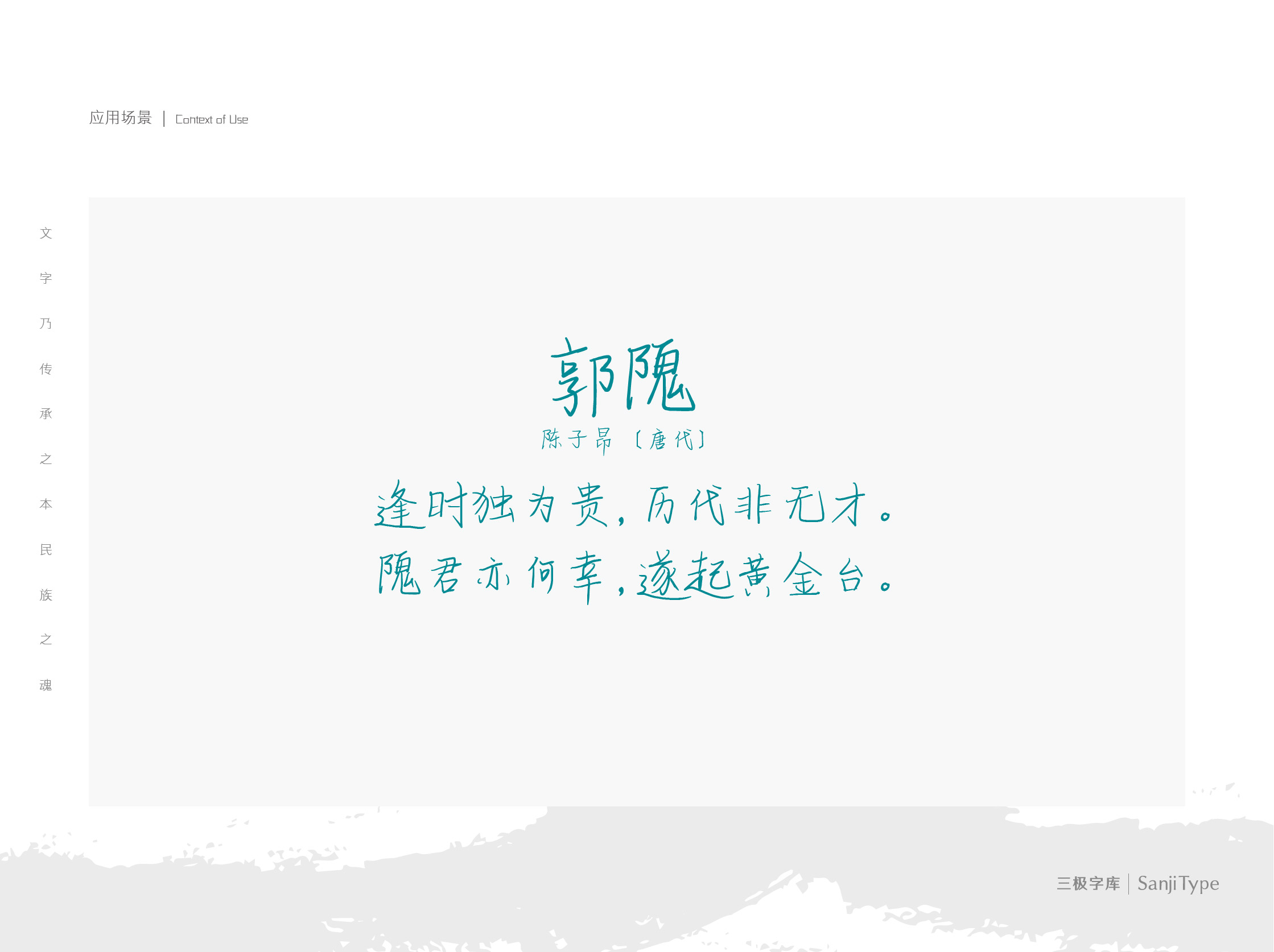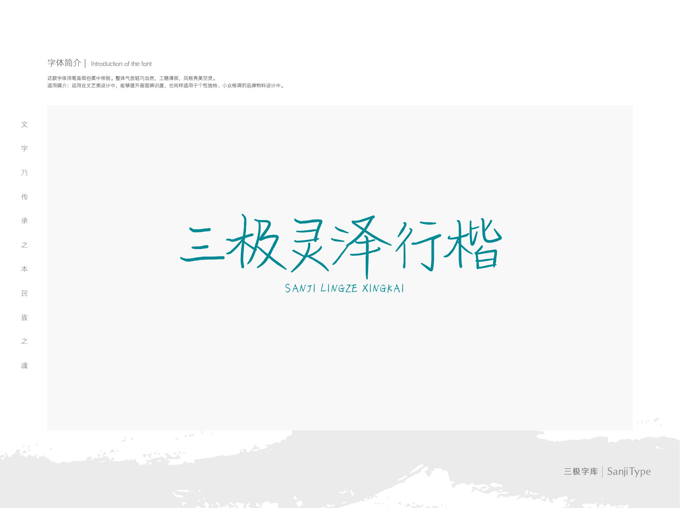 三极灵泽行楷这款字体用笔虽细但柔中带刚。整体气质轻巧自然,工稳清丽,风格秀美空灵。运用在文艺类设计中,能够提升画面辨识度,也同样适用于个性独特、小众格调的品牌物料设计中。