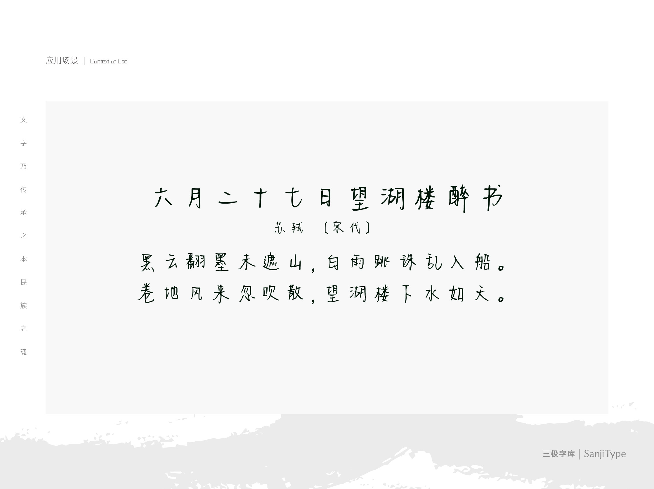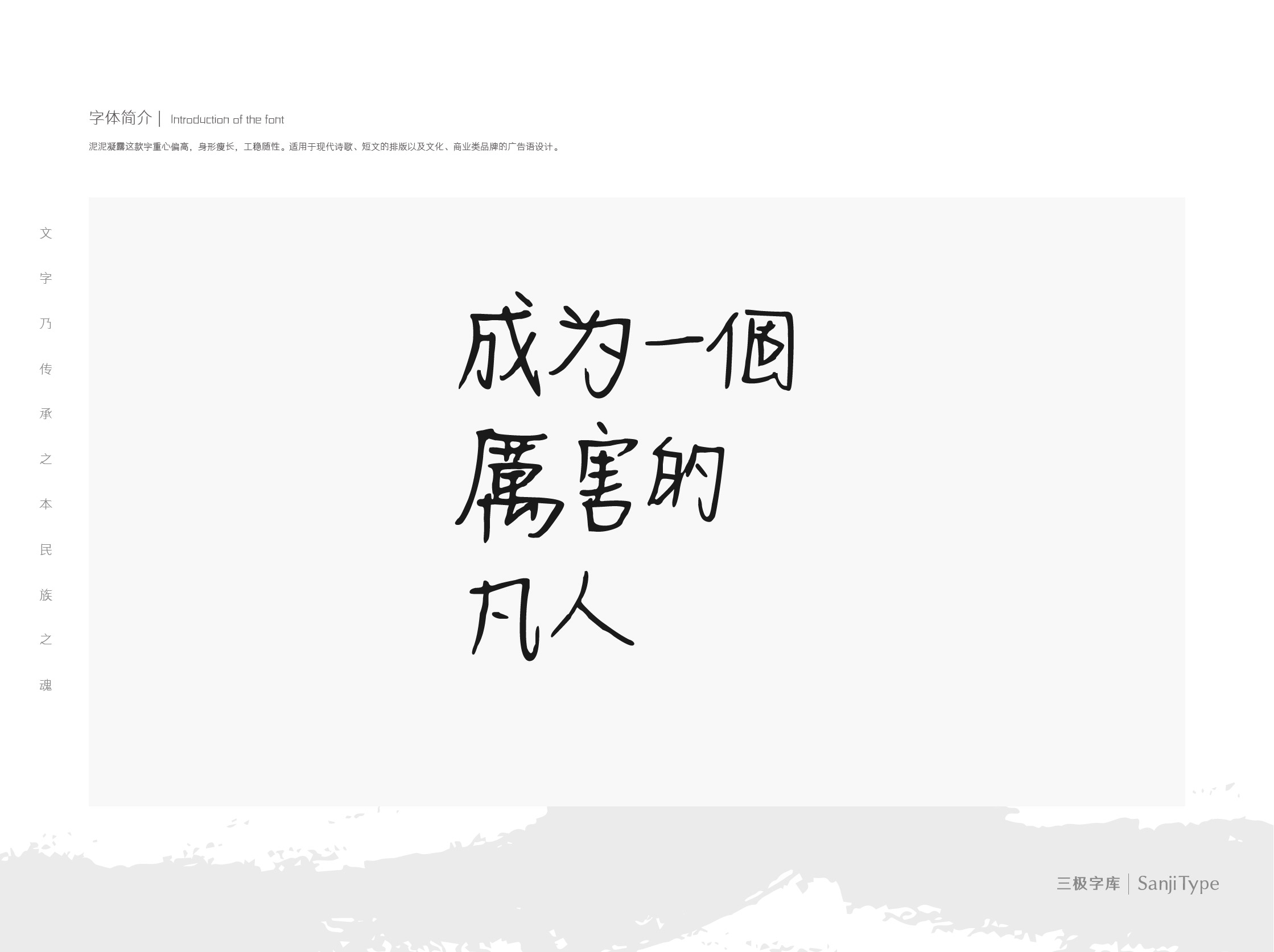 泥泥凝露这款字重心偏高,身形瘦长,工稳随性。适用于现代诗歌、短文的排版以及文化、商业类品牌的广告语设计。
