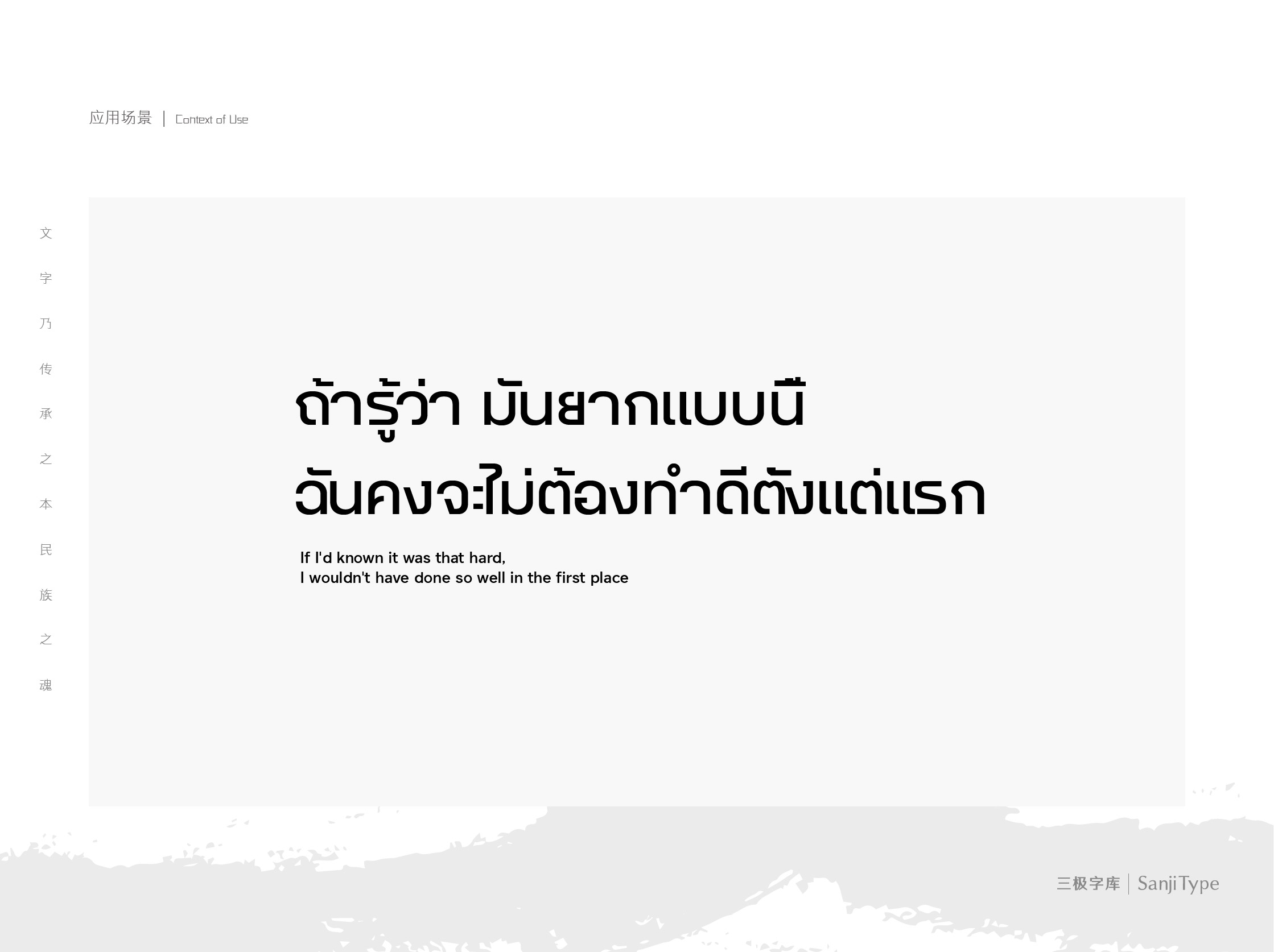 本字体包含英、泰文字符,字形简约利落,结构工整,兼具美观度与易读性于一体。适用于标题和正文,广告标语和包装设计。