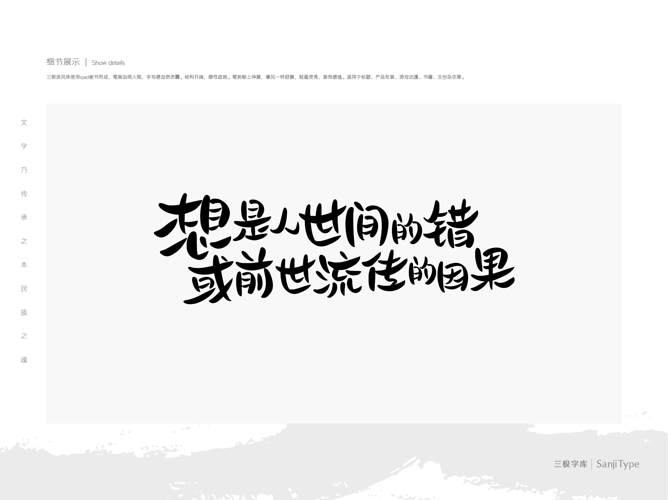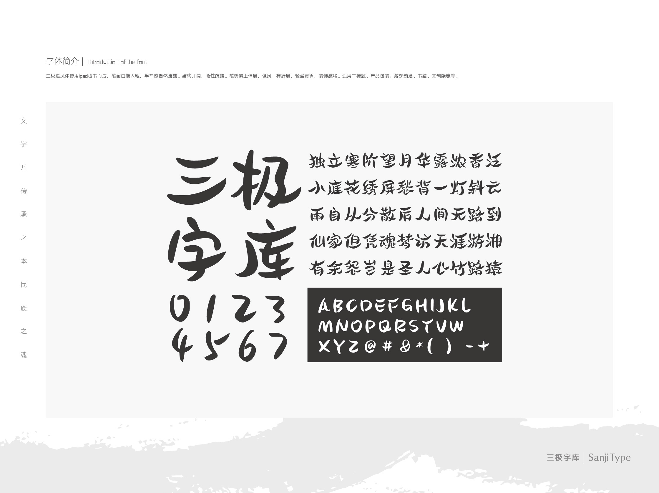 三极追风体使用ipad板书而成,笔画由细入粗,手写感自然流露。结构开阔,随性疏朗。笔势朝上伸展,像风一样舒展,轻盈灵秀,装饰感强。适用于标题、产品包装、游戏动漫、书籍、文创杂志等。