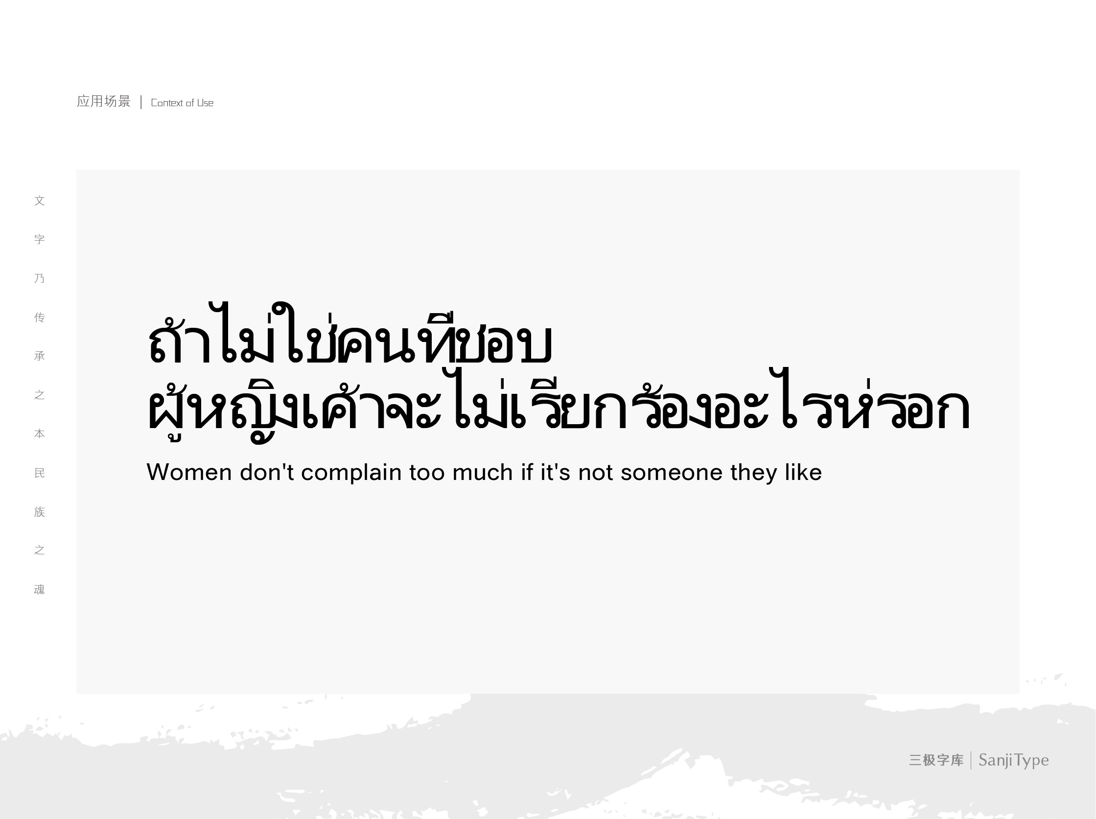 一款包含英文、泰文字符的字体,字形简约利落,结构优美,包含西文与泰文俩种字符。适用于标题和正文,广告标语和包装设计。