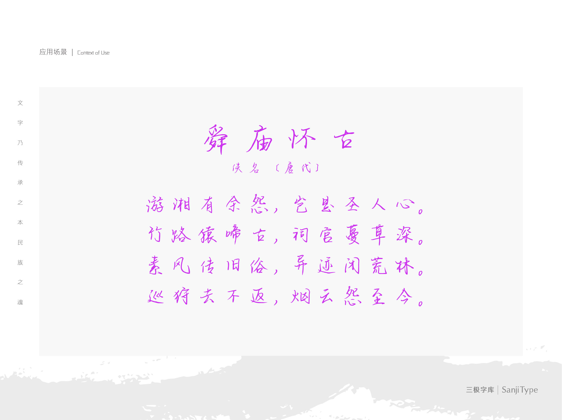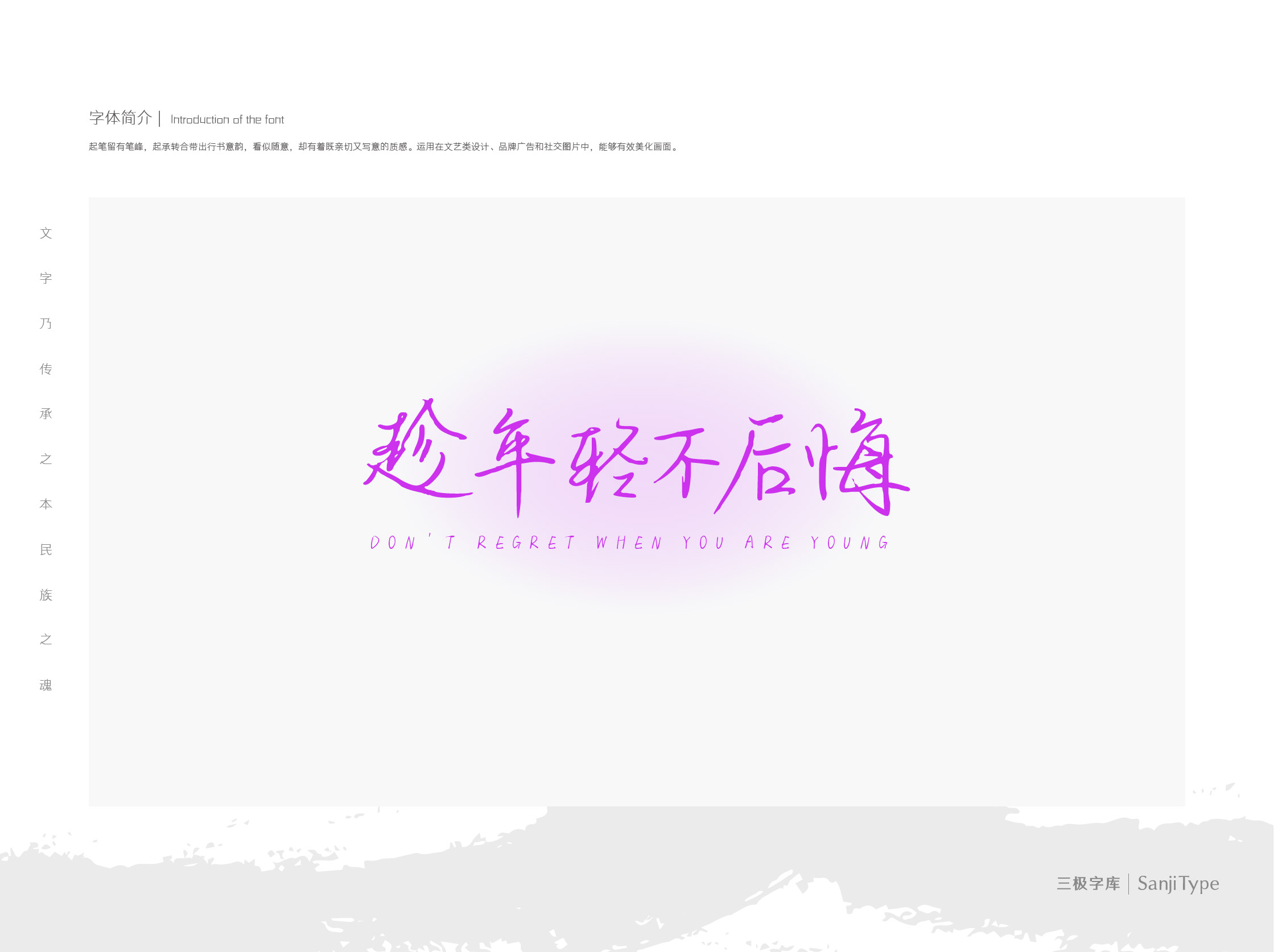 起笔留有笔峰,起承转合带出行书意韵,看似随意,却有着既亲切又写意的质感。运用在文艺类设计、品牌广告和社交图片中,能够有效美化画面。