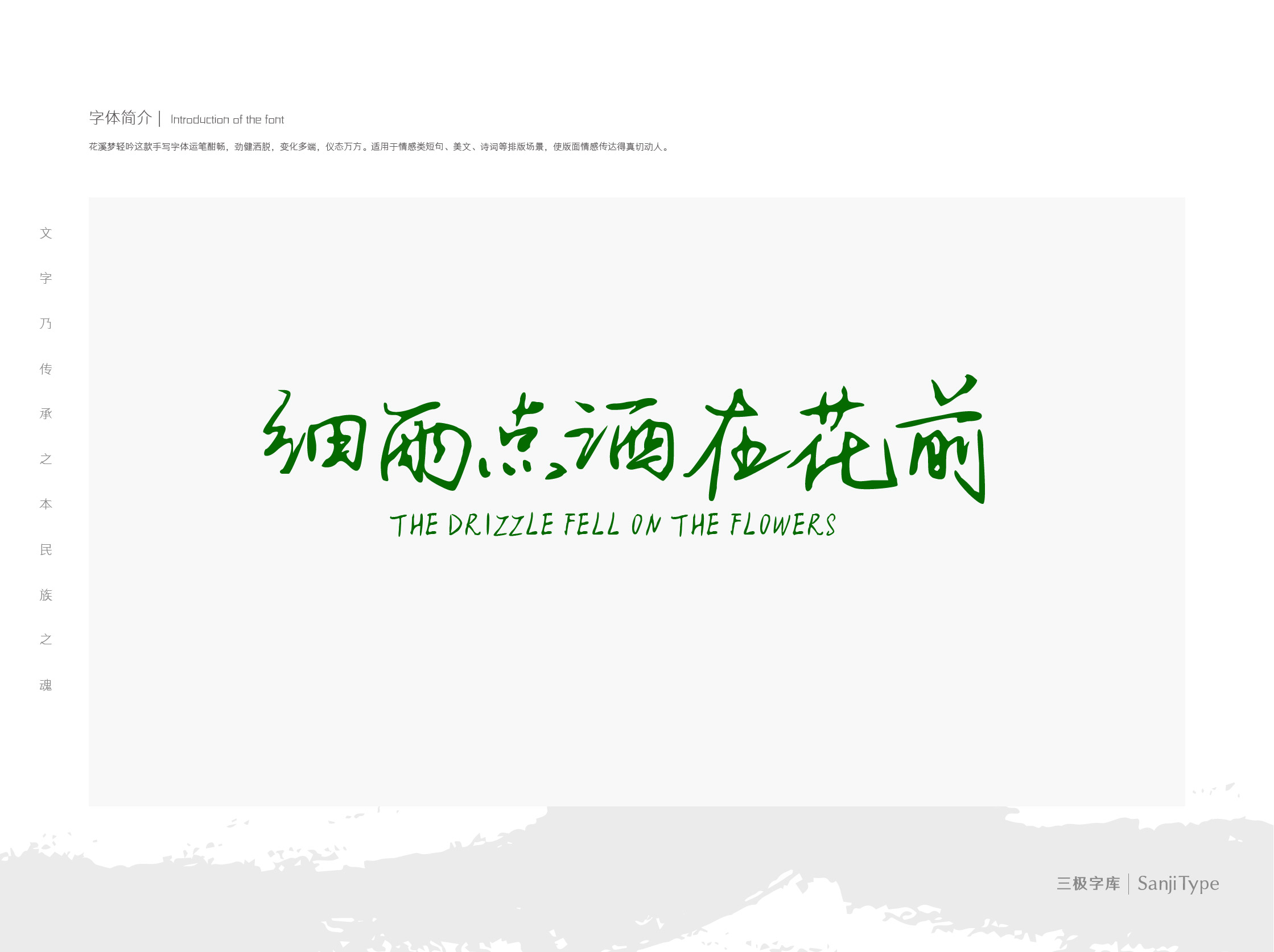花溪梦轻吟这款手写字体运笔酣畅,劲健洒脱,变化多端,仪态万方。适用于情感类短句、美文、诗词等排版场景,使版面情感传达得真切动人。