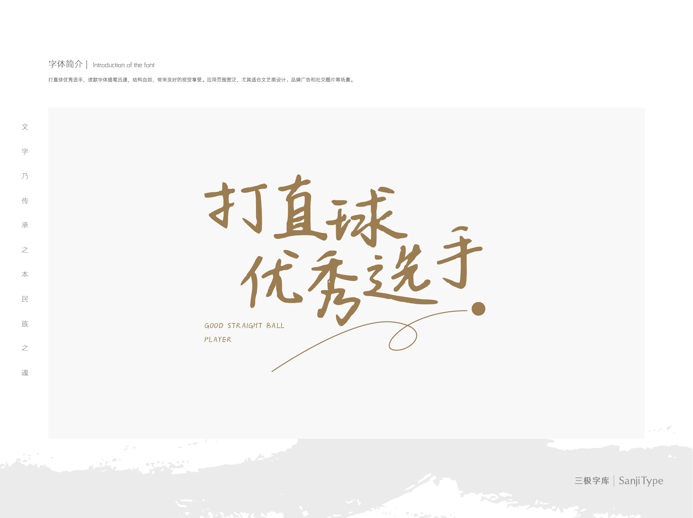 打直球优秀选手,该款字体提笔迅速,结构自如,带来良好的视觉享受。应用范围宽泛,尤其适合文艺类设计、品牌广告和社交图片等场景。
