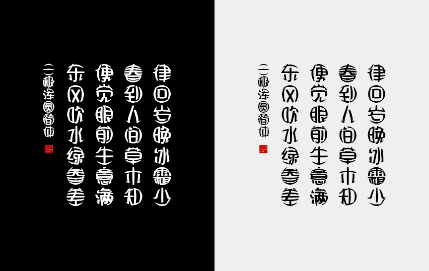 三极浑圆简体的设计风格一反常规,整体轮廓结构成球形,圆润有趣,带有浓厚的视觉膨胀感。适用于前卫、潮流、酸性设计等反常规主题设计中。