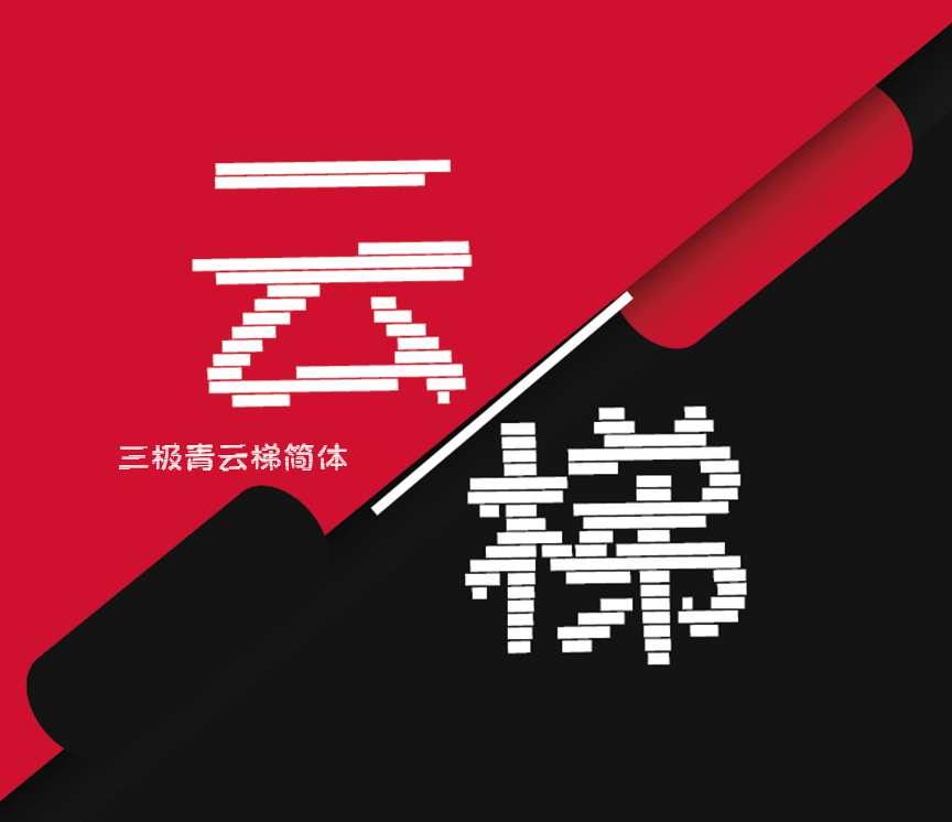 三极青云梯简体表现技法侧重于个性的表达,用笔震颤曲折,边缘不规整,如同一块一块的石块堆积而成。适用于前卫、潮流、酸性设计等反常规主题设计中。