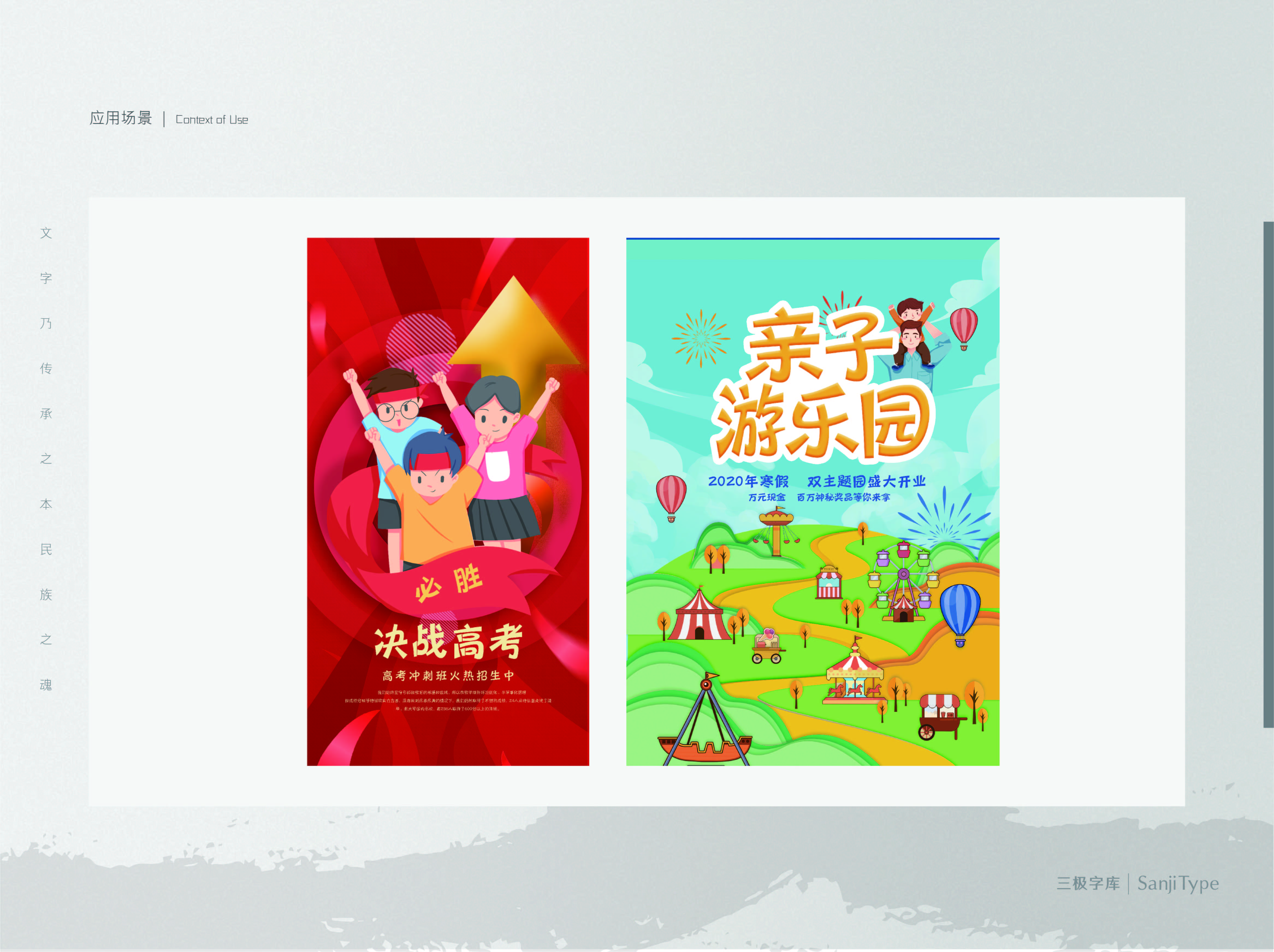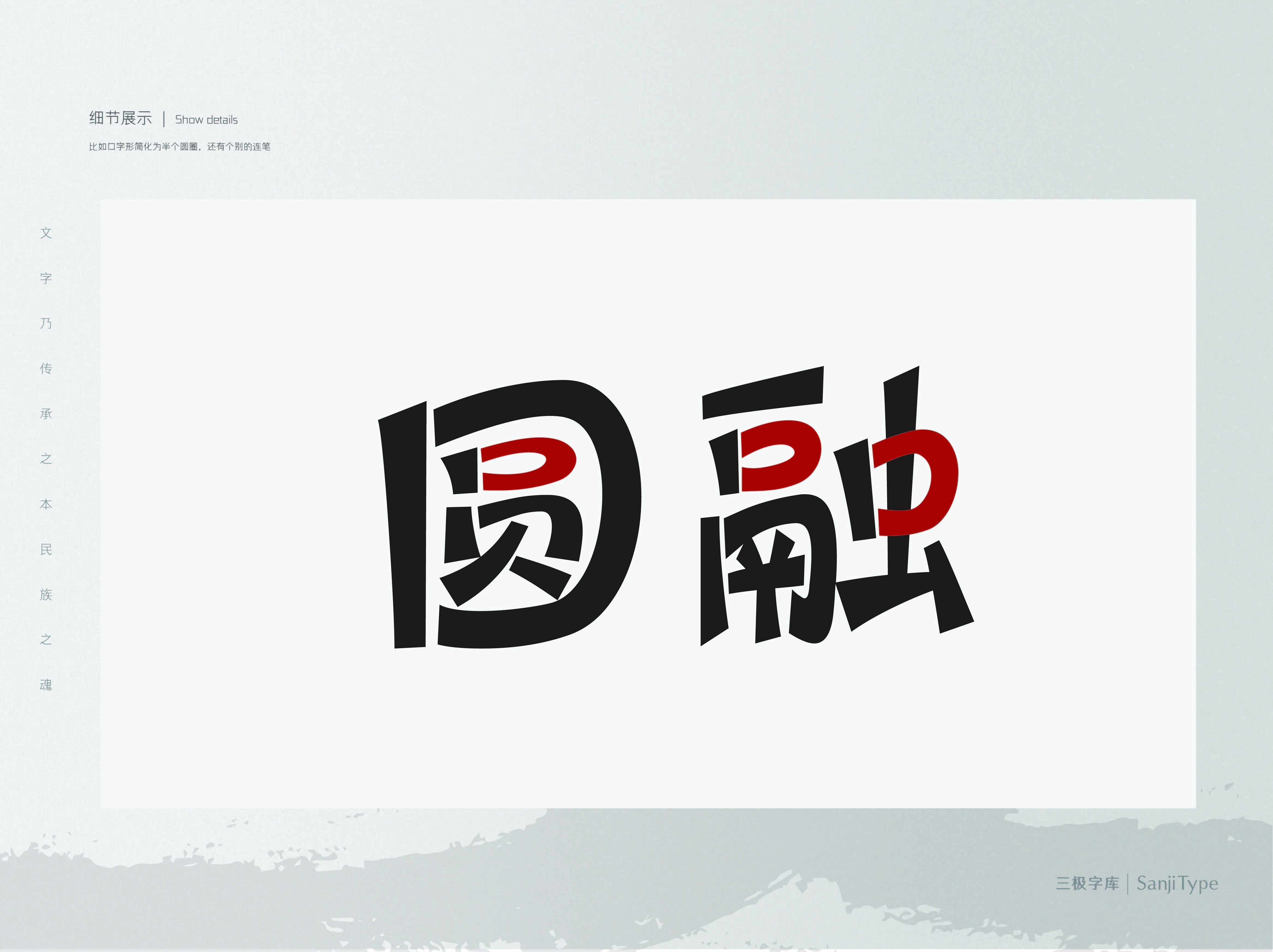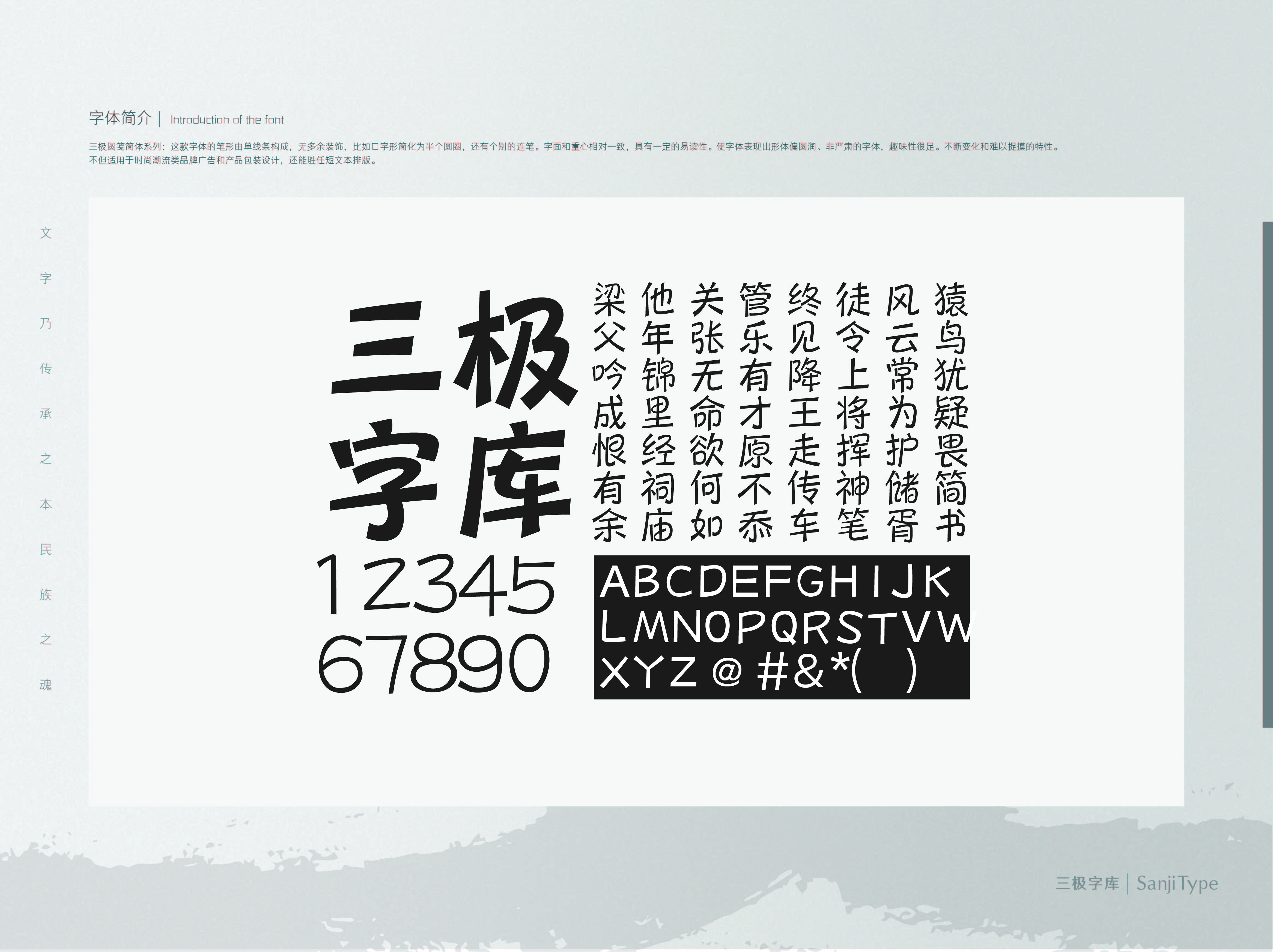 三极圆笺简体系列:这款字体的笔形由单线条构成,无多余装饰,比如口字形简化为半个圆圈,笔画断连增强装饰性。字面和重心相对一致,具有一定的易读性。形体偏圆润,趣味性十足。