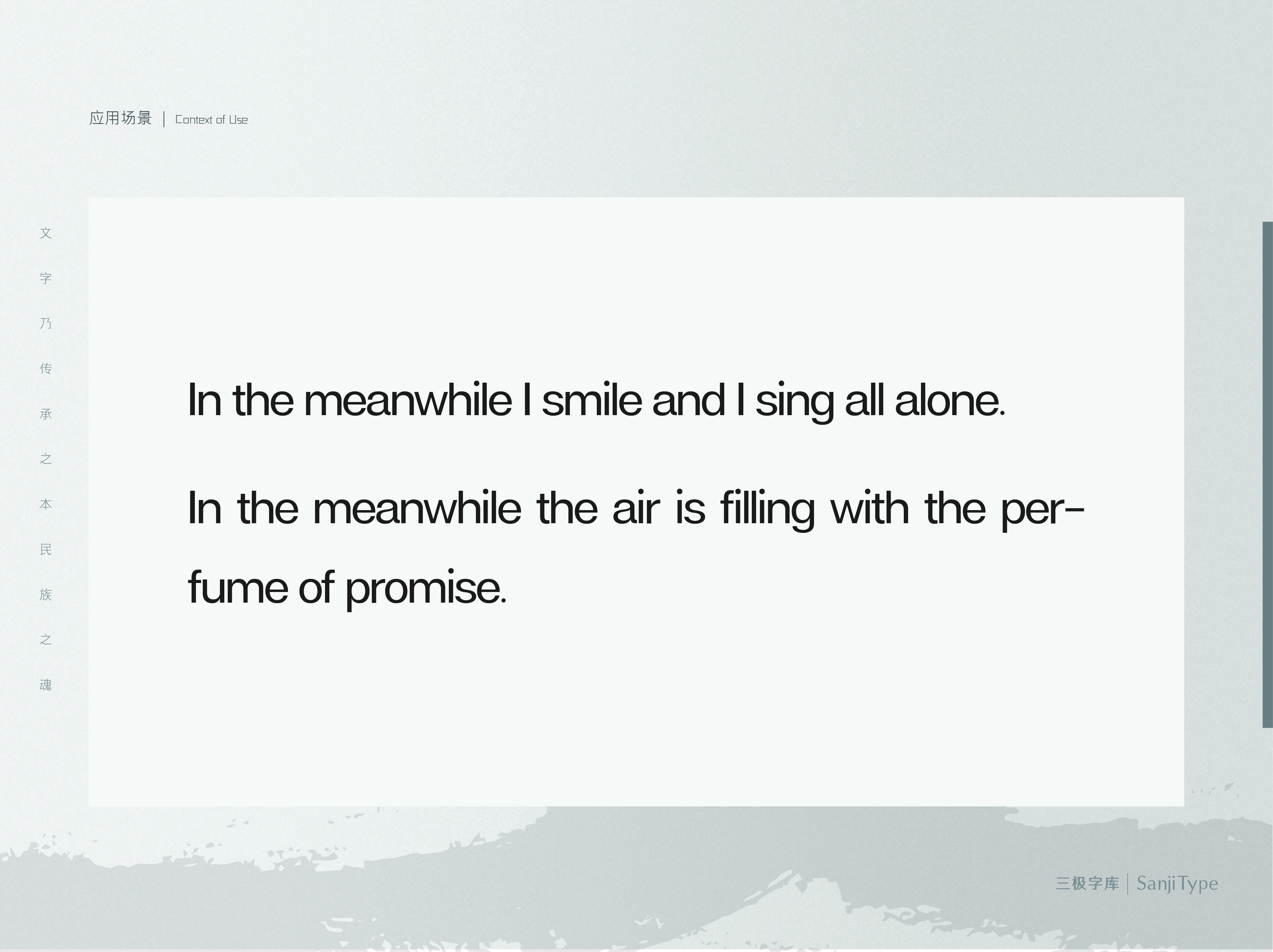 SJ Grotesk是一款无衬线字体,一共有9个字重。字体结构清晰,线条平滑圆润,转折柔顺,使得它可以涵盖杂志、书籍、广告、标志、宣传册的正文和标题用字,实用性极强。